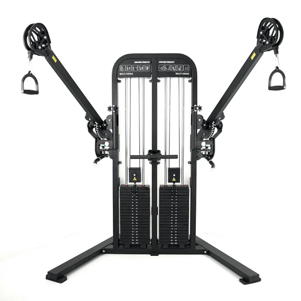• قابلیت چندایستگاهی و همه‌کاره: این دستگاه، که اغلب با دو ستون سیم‌کش مستقل و قرقره‌های قابل تنظیم ارتفاع شناخته می‌شود، امکان اجرای صدها حرکت مختلف را فراهم می‌کند. از حرکات کلاسیک مانند کراس‌اوور سینه (Cable Crossover) و فلای (Fly) گرفته تا انواع پرس (Press)، پول (Pull)، جلو بازو (Bicep Curl)، پشت بازو (Tricep Extension)، حرکات شکم (Abdominal Crunch)، عضلات سرشانه (Shoulder Raises) و حتی حرکات پایین‌تنه (Leg Kicks).